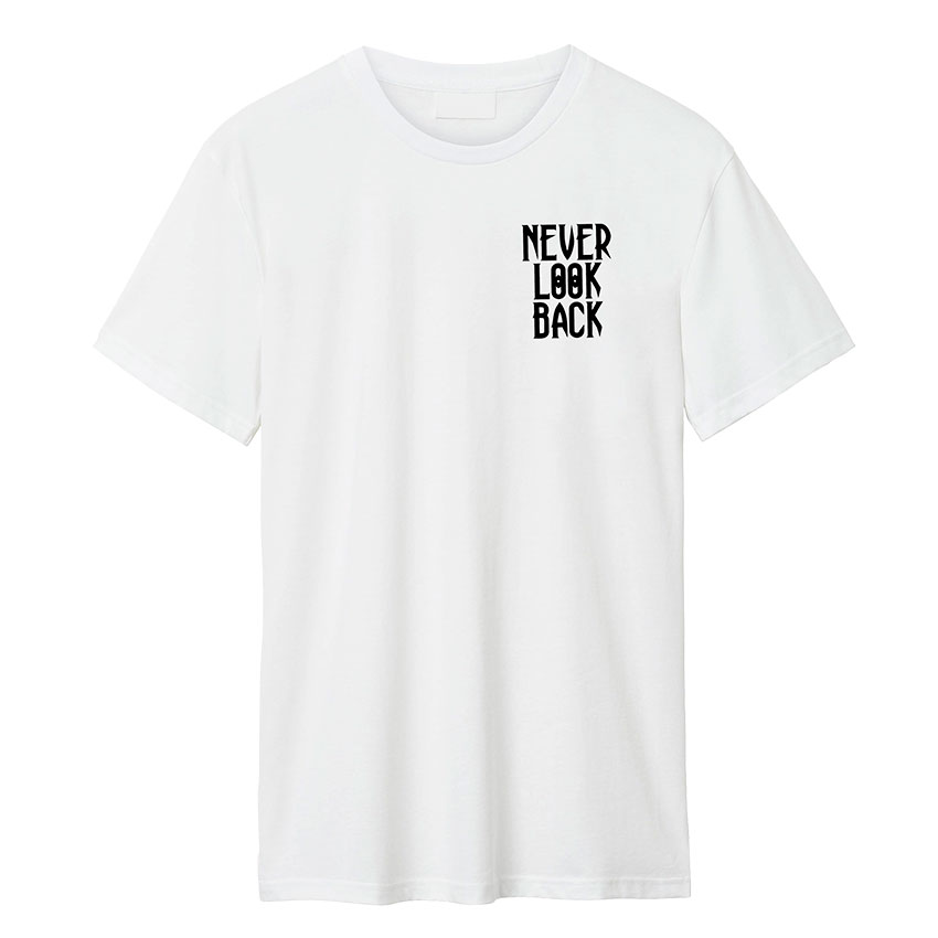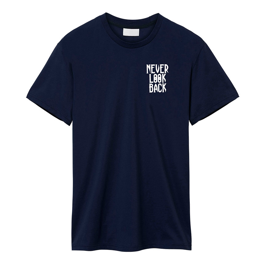 Playera para hombre 100% algodón modelo Never Look Back de nuestra Quotes Collection, disponible en 4 colores: blanco, gris, navy y negro.